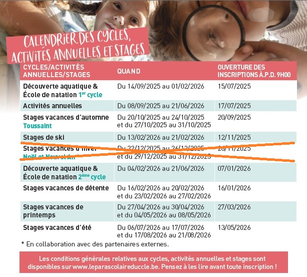 Cette publication comprend la multitude d’activités annuelles que nous proposons, toutes les périodes de stages, ainsi que les dates d’ouverture des inscriptions liées à ces périodes.